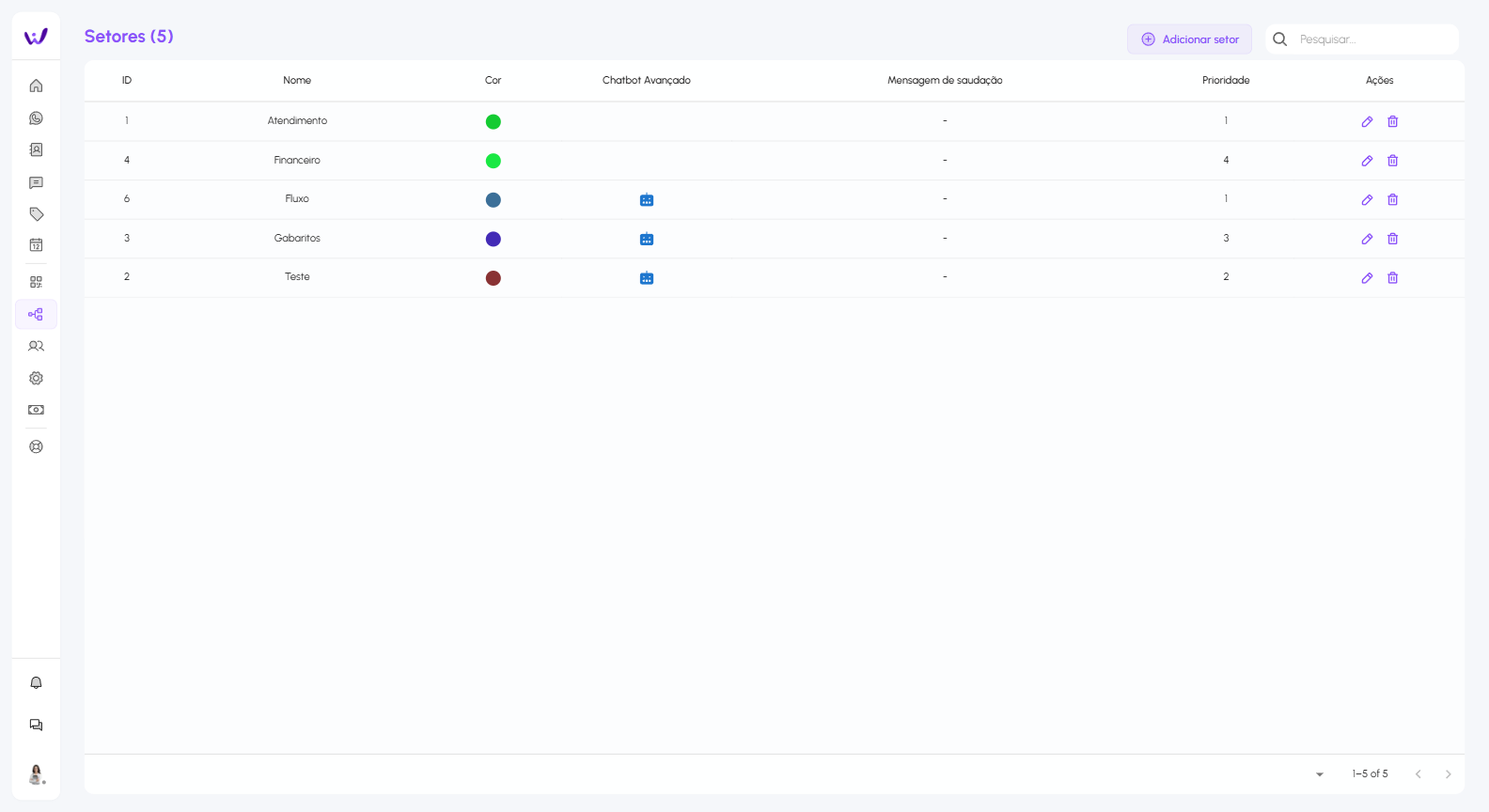 Crie e configure setores de atendimento de sua empresa, crie inúmeros fluxos de atendimento.